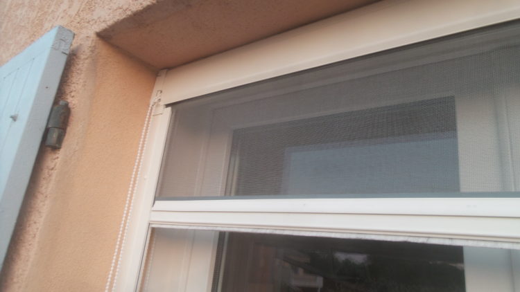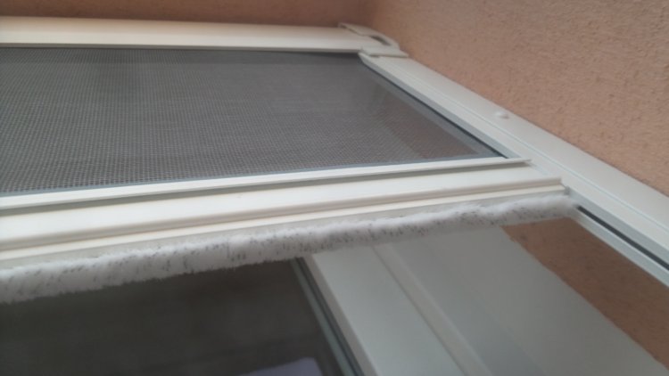La moustiquaire MoustiRoll 2 P dispose d'une toile maintenue dans les coulisses par des opercules en laiton fixés sur la lisière.