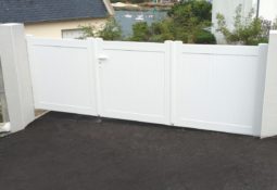 Le portail battant s’installe idéalement sur un terrain plat et permet une ouverture jusqu’à 180° afin d’optimiser le passage de la voiture.