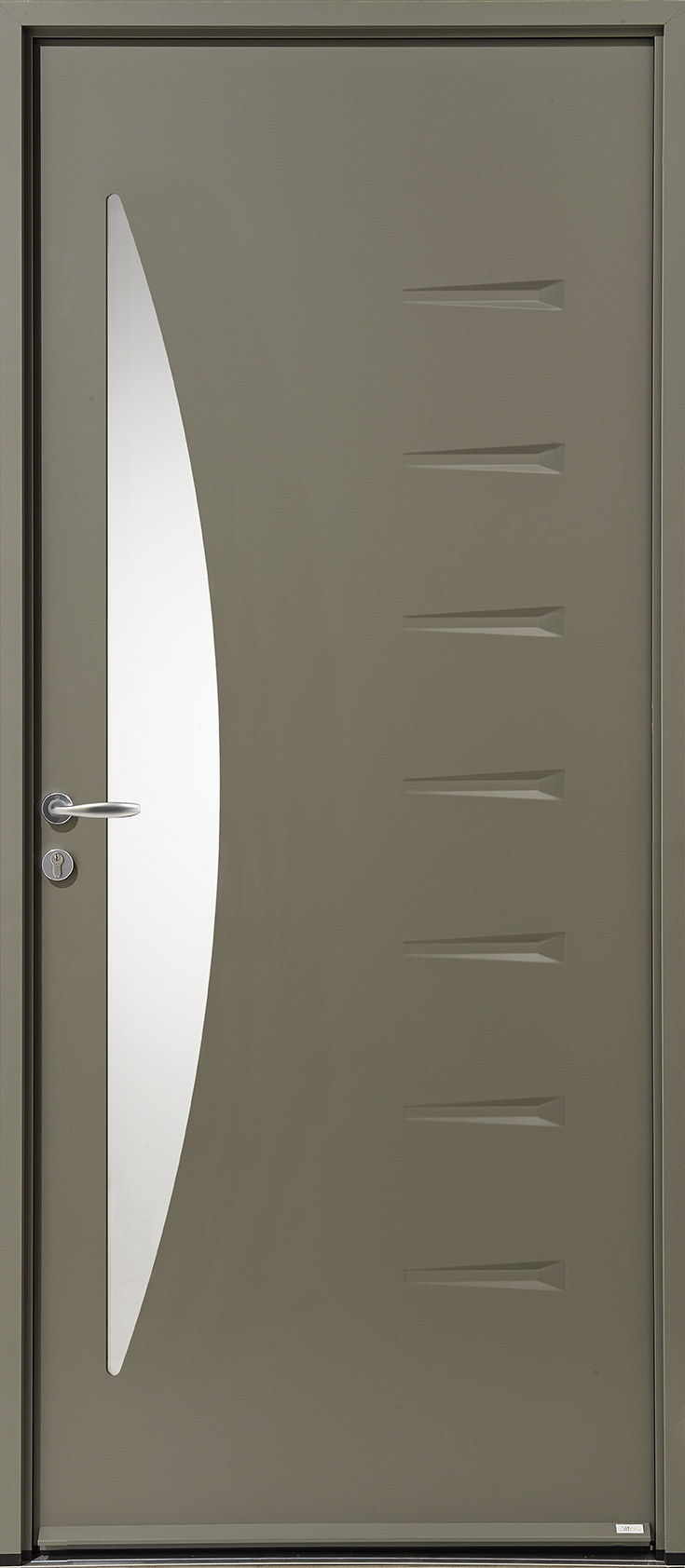 La porte d'entrée Amaya est constituée d'un vitrage affleurant en demi-lune. Les deux vantaux sont bicolores mais disposent du même décor.